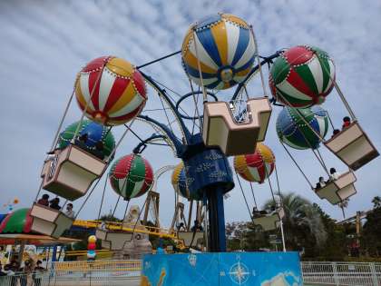 修学旅行生が多く、どのアトラクションも行列なしではのれません。