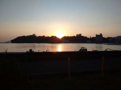 今日の天気は快晴。鳥羽湾に朝日が昇りました。
