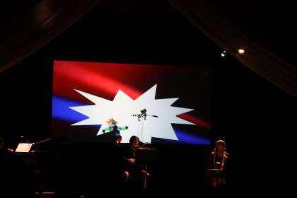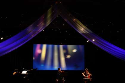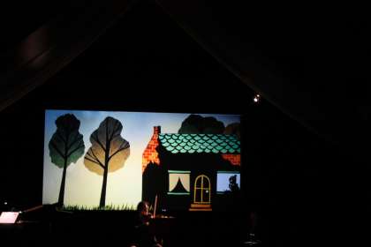 ピアノ・バイオリン・チェロのすてきな生演奏に載せて、色鮮やかな影絵で物語が展開していきました。