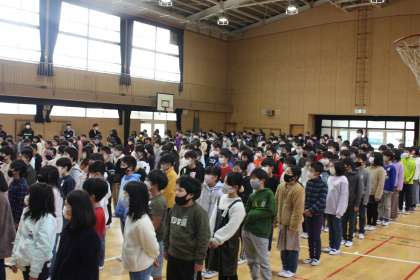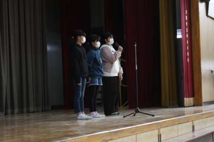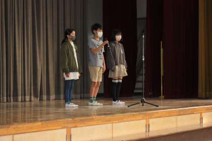 校長先生の講話の後、5年生と6年生の代表児童が、3学期の目標やがんばりたいことを発表しました。