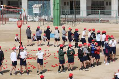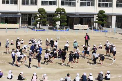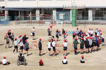 1年生と交代して、6年生もダンシング玉入れ(エビカニクス)をしました。