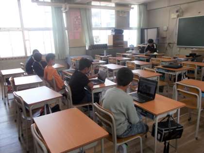 5・6年生が一人一台学習者用端末を使った双方向通信のテストをしました。