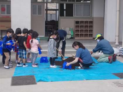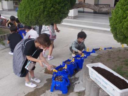 1年生が生活の学習で、アサガオのたねまきをしました。