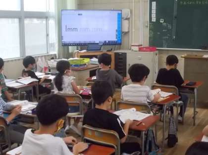 2年 算数  長さの単位mmの正しい書き方を練習しています。