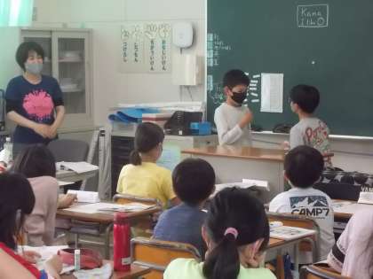 5年 外国語 自分の好きなことを相手に伝えて、自己紹介を