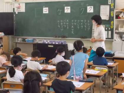 文字の学習は、ひらがなが終わりカタカナに入っています。