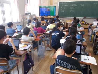 大阪に昔からある建物や施設を一人一台学習者用端末で調べています。