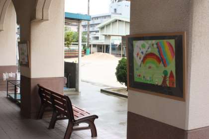 1学期に作った図工の作品を南校舎1階廊下に「塚本ギャラリー」として展示しています。
