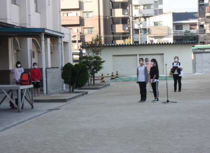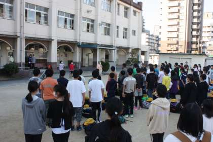 待ちに待った林間学習、出発式のようすです。