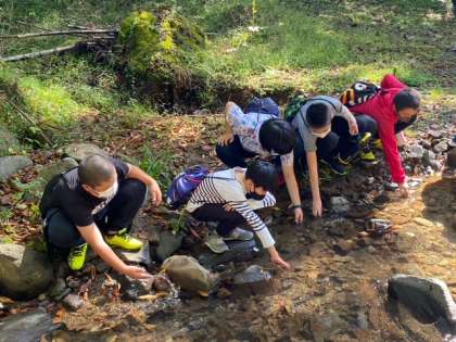 せせらぎでは、山の水の冷たさも感じることができました。