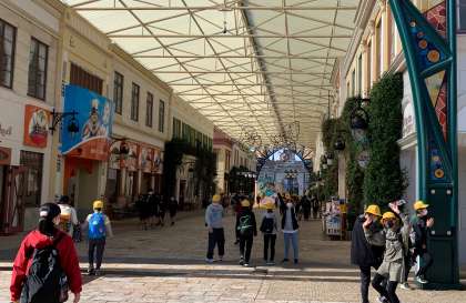 健康チェックを受け、スペイン村に入場しました。