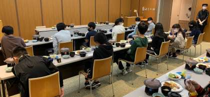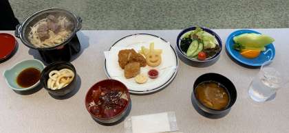 ゆったりしたお部屋でソーシャルディスタンスをとり、豪華な夕食です。