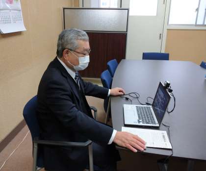 始業式は運動場で実施の予定でしたが、天候不良によりオンライン(Teams)で行われました。