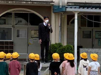 一年生の子どもたちは、在校生の前に立って、少し緊張していました。