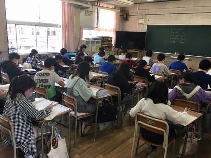 4月19日、6年生は1時間目から国語、算数、理科の調査に臨みました。持てる力を十分に発揮しようと懸命に取り組んでいました。