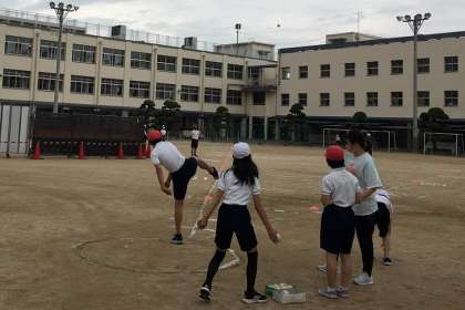各学年、ソフトボールを投げて、飛距離を測ります。