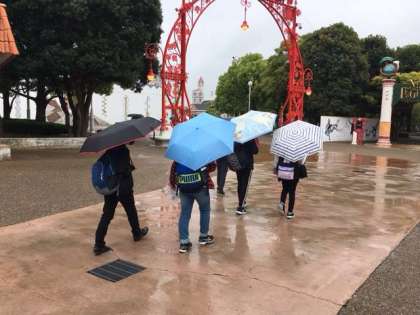 雨が降り出し、中止のアトラクションもありますが、子どもたちは楽しんでいます。
