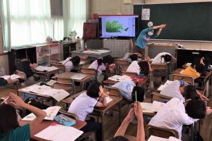 「たんぽぽの ちえ」、「たんぽぽのくき」になって、自分たちも教科書と同じように体を動かしてみました。