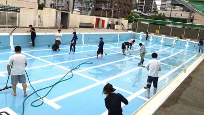 塚本小学校の教職員で、プールを使用できるようにしました。