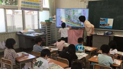 「ないを して いるのかな」、教科書の絵の中から、よいことをしている動物やわるいことをしている動物を見つけて、発表し合いました。