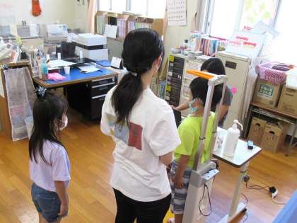 発育測定の結果は、「健康診断結果通知用封筒」にて、各ご家庭にお知らせしています。お子さまの身長と体重をご確認ください。