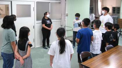 児童集会後、集会委員のメンバーは、互いに気づいたことを伝えあい、次の集会がより良くなるように話し合います。
