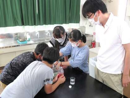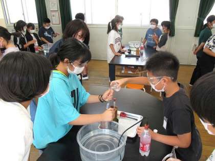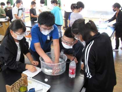 実験で、炭酸水に溶けている気体が二酸化炭素であることを確かめました。