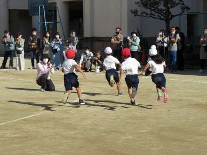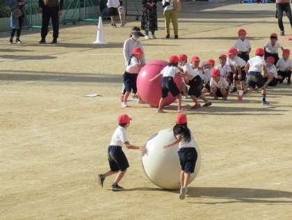 「かけっこ」「大玉ころがし」、全力で駆けました。