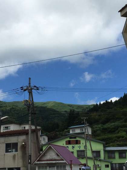 現地の天候は晴れ、宿舎の前から高丸山の稜線がはっきりと見えています。