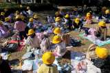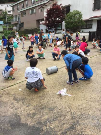 宿舎前の広場で、30分間転がしながら冷やし固めます。