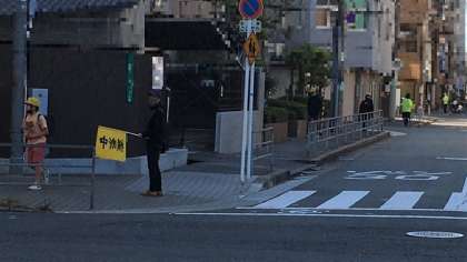 見守り隊の皆さんと共に、保護者の方にも登校時の安全確保の取組に関わっていただきました。