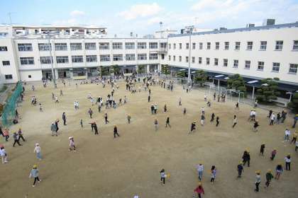 休み時間は、多くの児童が元気になわとび、鉄棒、おにごっこ、ボール遊び等、運動場で思い思いに過ごしています。