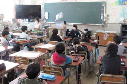 1〜3年生の子どもたちは、熱心に聞いていました。