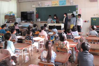 5・6年の図書委員のメンバーが各教室に出向き、紙芝居をします。