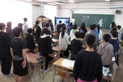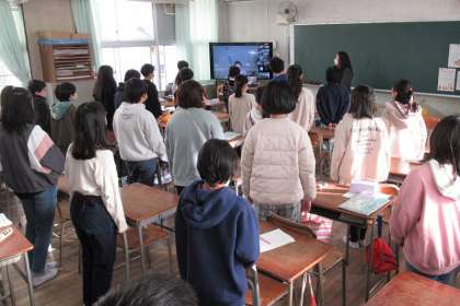 校歌を各クラスで歌いました。6年生が次に歌うのは、卒業式?