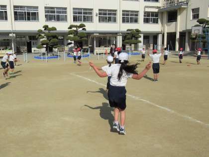 写真は体育の様子です。〔上:3年 中:2年 下:1年〕