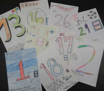 「卒業まで、あと〇日」の日めくりを一人1枚分担して、書きました。