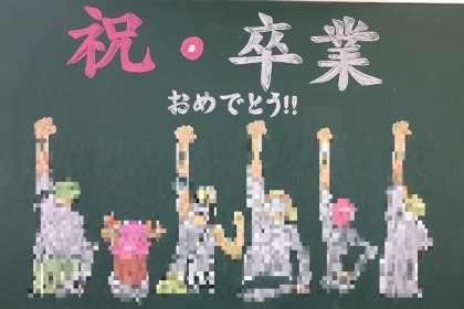 6年生の各教室には、卒業する6年生への担任からのメッセージが描かれていました。