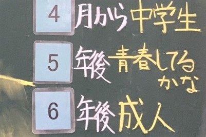 ・「君たちの何も」「ここで終わらない」「いざ 中学」「これからも」「何だって できる」「飛べ」