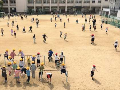 各学級にドッジボール、大なわとびが配られました。子どもたちは、チャイムが鳴ると運動場に飛び出してきて、一輪車、鉄棒、ドッジ、バスケ、鬼ごっこ…と、思い思いに楽しんでいます。