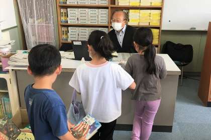 貸出が可能になりました。新しい本も借りられます。〔写真は2年生〕