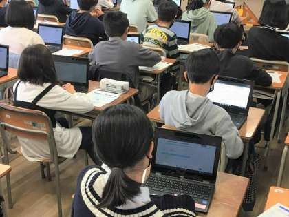 4月25日、6年生は、学習意欲や学習方法、学習環境、生活習慣等の質問に、一人一台端末を使用して、オンラインで回答しました。