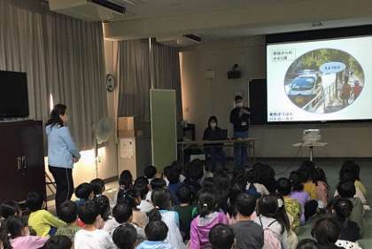 クイズ形式で、不審者から自分の身を守るための知識を深めました。