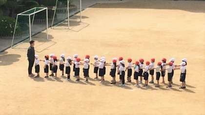 1〜5年生は遠足に行きます。2列にまっすぐ並ぶ練習をしました。