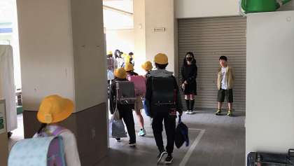 児童会、学級代表、委員会の委員長が「あいさつ隊」として、登校してきたお友だちに玄関や廊下であいさつします。