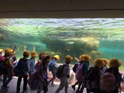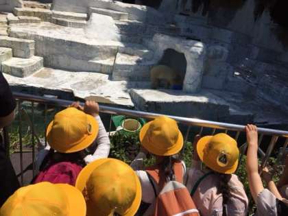 子どもたちが楽しみにしていたシロクマ、新しい展示エリアを見学し、学校へ向かいます。