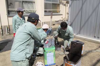 日を改めて、給食室の設備の修繕も行ってもらいます。