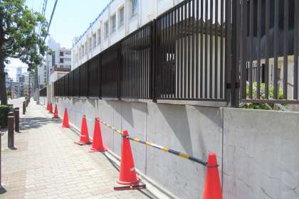 当初は、淀川通りに面した外柵全面と東側の東南通用門までの外柵を塗り直す予定でしたが、天候に恵まれたこと、営繕班のメンバーの方と本校管理作業員が協力して励んでもらったので、作業が予想以上にすすみました。東側の外柵の大部分を塗ることができました。塗装された柵は、光沢があり、雨もよくはじきます。