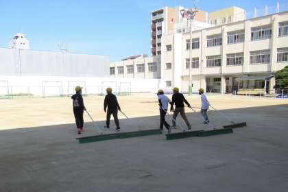 朝から運動委員会のメンバーが、運動場を整地してくれました。