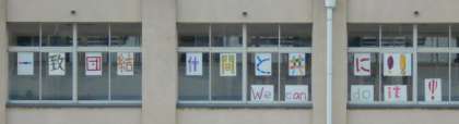 早速、代表委員会の児童が北校舎の窓に掲示しました。